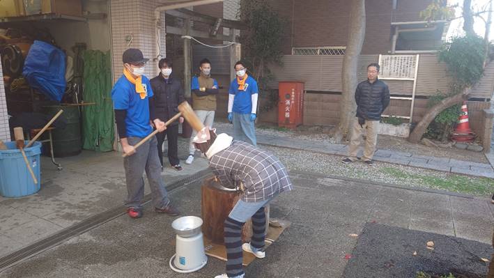 12月7日 千鳥南町会会館広場で子ども餅つき大会